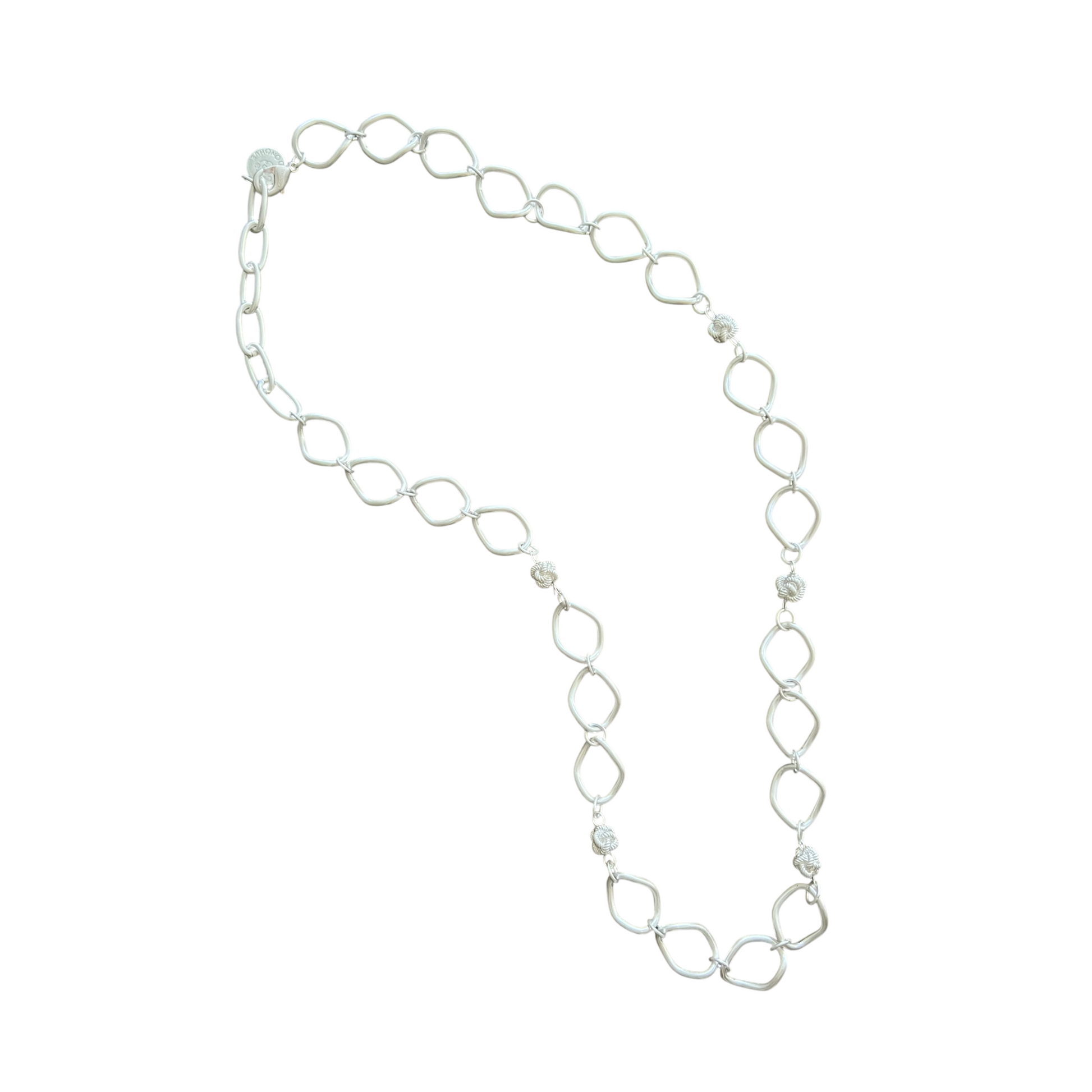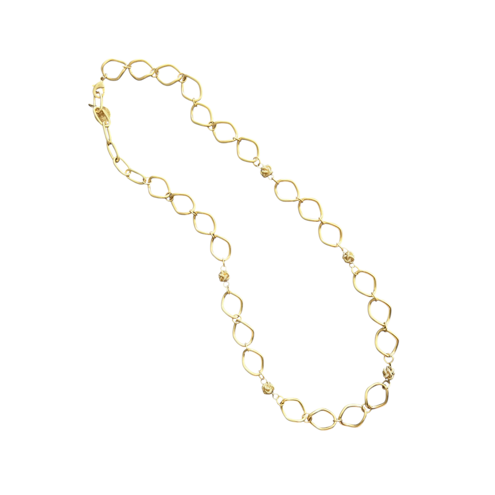 A lofty chain that can be worn single or double layer. 14K gold or/and Sterling silver plated links connected by our signature Divinity Knots. length 33".