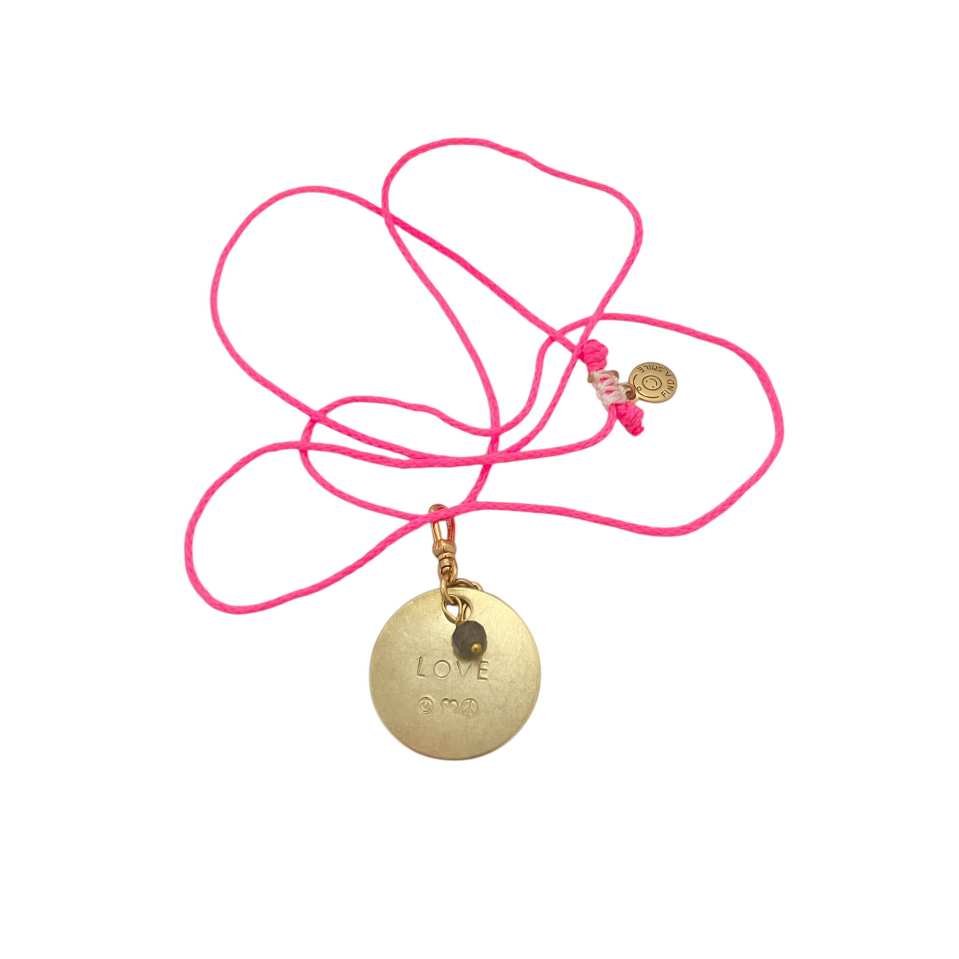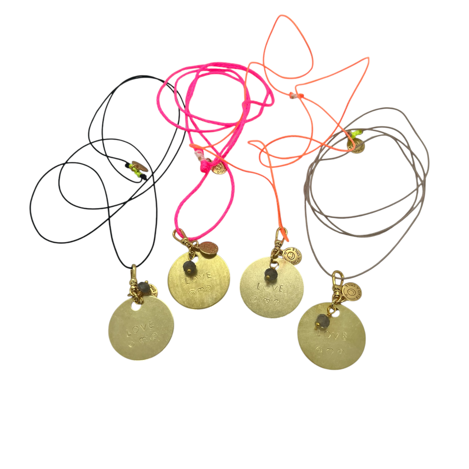 - Hand stamped brass coin with small labradorite charm