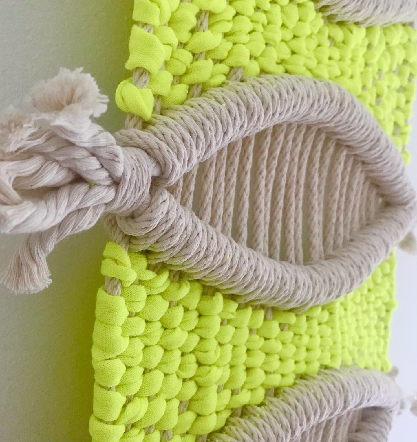 Recycled T-shirt yarn on driftwood